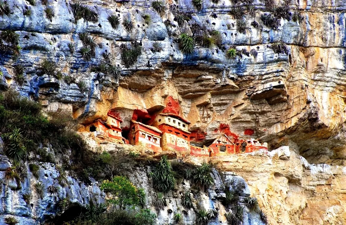 Ravesh’s Mausolea are rectangular-shaped funerary chullpas, with 1 and 2 floors and double-slanted roofs, built on inaccessible cliffs, in caves carved in the rocky walls of out-jutting rocks and imposing precipices, and are collective sepultures, as evidenced by the bone remains they still contain.